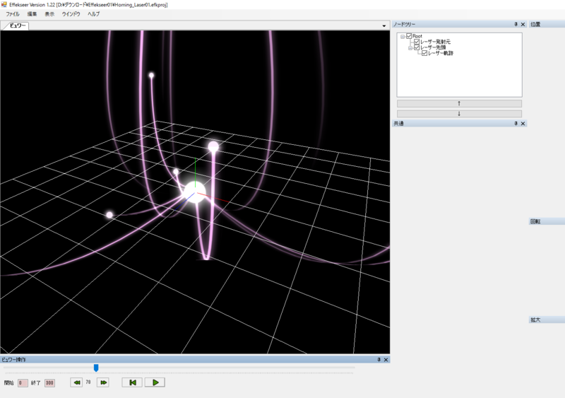 その中の1つをEffekseer.exeに読み込みます。(ドラッグ&ドロップ可)