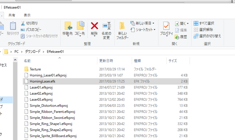 zip解凍すると「~.efkproj」というファイルがいっぱい入っているので、